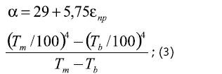 коэффициент теплоотдачи (α) от газовой среды к поверхности конструкции равен: