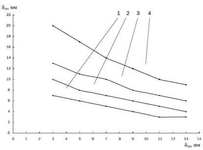 Обозначения на рис. 1–4 следующие: δск – толщина сухого слоя огнезащитной краски; δпр – приведенная толщина стальных конструкций.