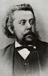 Модест Петрович Мусоргский (1839-1881) - талантливый русский композитор. Родился в Торопецком уезде Псковской губернии, окончил курс в бывшей школе гвардейских подпрапорщиков, недолго служил в преображенском полку, потом в главном инженерном управлении, в Министерстве государственных имуществ и в Государственном контроле. Музыкальный кружок Балакирева оказал огромное влияние на артистическое развитие Мусоргского, выявив его настояшее призвание и заставив обратить более серьезное внимание на музыкальный занятия. Под руководством Балакирева Мусоргский читал оркестровые партитуры, знакомился с анализом музыкальных произведений и критической их оценкой. Раньше Мусоргский учился игре на фортепиано у Герке и сделался хорошим пианистом. Хотя пению Мусоргский и не учился, но обладал довольно красивым баритоном и был недурным исполнителем вокальной музыки. Уже в 1852 году фирмой Бернард в Санкт-Петербурге издана фортепианная пьеса Мусоргского. В 1858 году Мусоргский написал два скерцо, из которых одно инструментовано им для оркестра и в 1860 году исполнено в концерте русского музыкального общества под управлением Антона Рубинштейна. Вслед затем Мусоргский написал несколько романсов и принялся за музыку к трагедии Софокла "Эдип"; последняя работа не была окончена и только один хор из музыки к "Эдипу", исполненный в концерте К. Н. Лядова в 1861 году, издан в числе посмертных произведений Мусоргского. Для оперной обработки