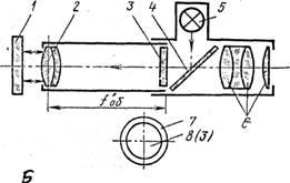 плоскопараллельная пластинка; 5-источник света; 6-окуляр; 7-диафрагма; 8 (3)-сетка нитей
