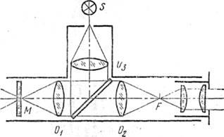 Он отличается тем, что в нем между крестом нитей М и окуляром помещаются две одинаковые линзы О1