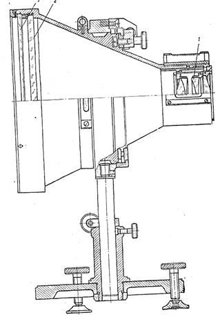 Широкоугольный коллиматор, схема которого показана на рис.7 имеет объектив “Индустар” И-51: 2β=45°; f´=210 мм относительное отверстие 1:4,5.