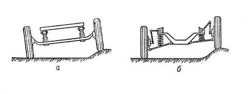 Рис. 4. Основные типы подвесок автомобиля: а) зависимая подвеска б) независимая подвеска
