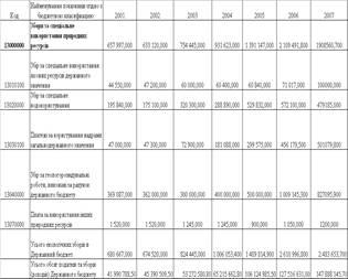 3.1 Динаміка показників обсягів екологічних зборів за використання природних ресурсів в Державний бюджет України за 2001 – 2007 роки та місцеві бюджети у Дніпропетровській області за 2003 – 2006 роки