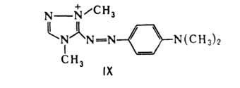 4. Основные и катионные азокрасители содержат в молекуле основные или ониевые группы, например красный азокраситель (IX); растворимый в воде с образованием цветных катионов.