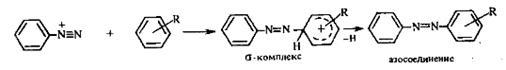 Взаимодействие диазосоединений с ароматическими аминами и фенолами, сопровождающееся образованием веществ, содержащих азогруппу —N = N—, связанную с двумя ароматическими радикалами, называют азосочетанием.