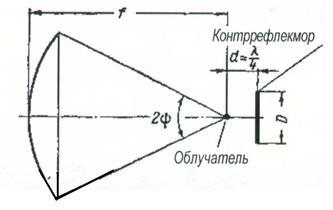 Фокусное расстояние антенны в этом случае определяется из геометрических соображений, а именно:
