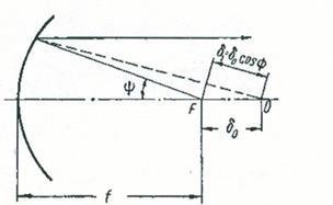 При смещении центра облучателя из фокуса на расстояние δ0 вдоль оси зеркала искажение фазового фронта определяется зависимостью: