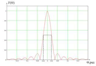 Где θ – угол в горизонтальной плоскости, отсчитываемый от нормали к щели.