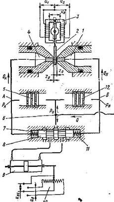 Рис.9. Двухкаскадный усилитель типа сопло-заслонка: