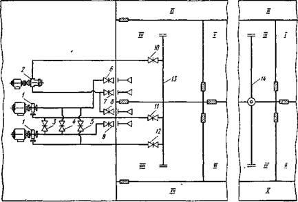Рис. 101. Насосное отделение танкера грузоподъемностью 5000 т.