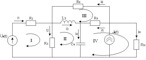 Рисунок 2. Выбор направлений токов в ветвях и контуров.