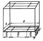 Розмітити на підлозі дві лінії, паралельні подовжнім стінам, на відстані А/4 Відзначити на лініях чотири точки на відстані В/4 від поперечних стін і перенести на стелю жердиною з схилом. Виконати розмітку аналогічно розмітці двох світильників.