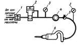 Діропробивні роботи виконують пневматичним рубільним молотком 6, що підключається до компресора або до пневмосистеми через фільтр вологовідділювач 1, регулятор тиску 2, манометр 3, оливо розпилювач 4 та вентиль 5.
