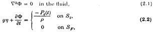 де Si - i – та внутрішня вільна поверхня, SF - зовнішня вільна поверхня, і h (x, y, t) – підйом поверхні, який задовольняє: