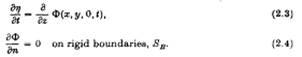 Попередні рішення пристроїв хвильової енергії, які базуються на ідеї форсування пійманого об’єму повітря на водній поверхні через турбіну, були змодельовані вільними поверхнями з умовою для твердої поверхні запропонованої вертикальної швидкості. Подивимось, наприклад, Коунта та ін. (1981). Там обговорювалось, що довгі хвилі принаймні (k® 0), умова тиску (2.6) зводиться до умови твердої поверхні. Однак, щоб бути послідовними, те ж саме наближення потрібно зробити по вхідній вільній поверхні, в якій випадок задачі елемента хвилі втрачений.