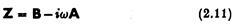 де A, B - реальні симетричні матриці розмірністю NxN , з B коефіцієнтом демпфування, взагалі визначеним позитивним, який, в принципі, можна обчислити. Розкладання (2.9) можна порівняти з звичайним розкладанням сили на коливальному тілі в позначеннях доданої маси і матриць демпфування.