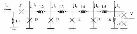 в JTL, імпульсу SFQ поширюється через JTL без зберігання в цих петлях. SFQ / DC перетворювача містить цикл SFQ зберігання J5, L5, і L6, в якому LIc