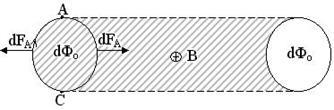 – потік, який визначається площею лівої частини контуру АС (заштрихована площа),