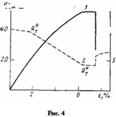 Первоначально образец растягивался до разрушения с постоянной скоростью 4,8-10-5