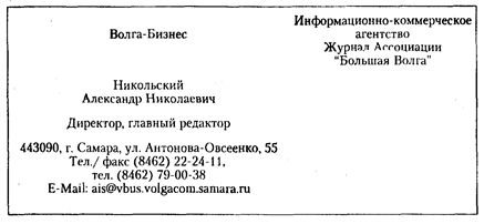 Деловые люди сегодня при знакомстве часто обмениваются визитными карточками. Это удобно. Это экономит время, потому что визитная карточка содержит необходимую информацию о деловом человеке: его имя, отчество, фамилию, должность, место работы, контактные телефоны, часто и домашний телефон и адрес. Поэтому в случае, если вы вручаете визитную карточку, необязательно называть имя и отчество, можно только фамилию. Другое дело, если вы представляетесь, не имея при себе визитной карточки. Тогда вы называете полностью имя, отчество, фамилию и контактный телефон после названия или представления своей фирмы: