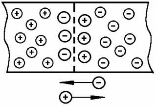 Електрони та дірки можуть вільно переходити через межу поділу провідності. Оскільки в лівій частині напівпровідника є велика кількість дірок, то вони вирушать у праву, а електрони – навпаки, у ліву. Потрапивши до лівої частини з р