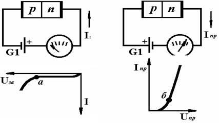 ), струм через перший перехід не протікатиме, оскільки електричне поле цього джерела менше електричного поля атомів донорів і акцепторів першого (лівого за схемою) р-п