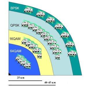 Тим самим, об'єктивним показником можливості підтримки тієї або іншої модуляції є вимірюване системою WIMAX відношення CINR. Саме по значеннях CINRсистема WIMAX встановлює робочу модуляцію сигналу, що забезпечує стійку роботу каналу зв'язку з рівнем бітової помилки не вище Ber=10e-6.