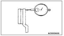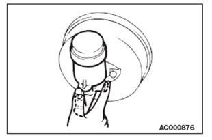 (4) Если величина биения не превосходит предельного значения, дефазируйте (сместите поворотом) тормозной диски вновь закрепите его. Вновь проверьте биение тормозного диска.