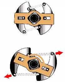 Рис. 1.3 Пристрій і схема роботи відцентрового регулятора кута випередження запалювання: