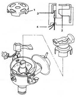 Також у цій системі присутні механізми коректування випередження запалювання – відцентровий (рис. 1.3) і вакуумний (рис. 1.4), регулятори.