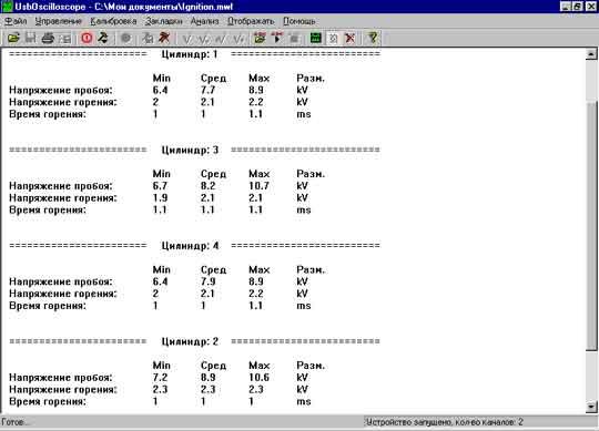 Напруга по всіх циліндрах рівномірно й дорівнює 40-45 кВ (15 мм). Справна система запалювання.