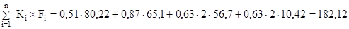 загальна площа тепло передаючих поверхонь дорівнює сумі площ тепло передаючих поверхонь елементів вагона, м2