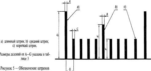 Не должно быть интерполяции шкалы между двумя короткими линиями. Если она все-таки необходима, то требуемая точность не должна быть более одной пятой интервала и интервалы должны быть увеличены.
