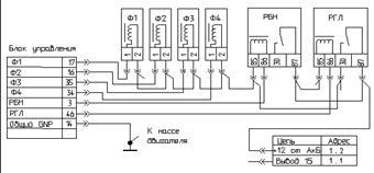 Рис. Система впрыска топлива BoschK-Jetronic с системой отсечки топлива при чрезмерных оборотах двигателя и системой экономии топлива.