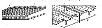 Устройство продольных и поперечных брандмауеров в одноэтажных промышленных зданиях: 1 – поперечный брандмауер; 2 – продольный; 3 – наружный брандмауер.