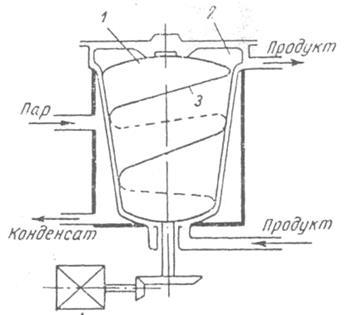 На рис. 1 показана схема пастеризатора з барабанною мішалкою. Барабанна мішалка 1 має лопасті 2 і спіраль 3 для посилення турбулізації потоку молока. За даними каталогу, внутрішній діаметр резервуару D = 0,51 м;діаметр мішалки d = 0,504 м, число оборотів барабана n= 314 об/мин. Поверхня тепловіддачі при двосторонньому обігріві F = 1,5 м2