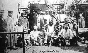 А.П. Чехов, А.М. Горький и труппа Художественного театра в Ялте во время гастролей театра в Крыму (1900 г.).