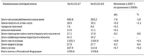 Глава 2. Характеристика, анализ и динамика земельного фонда Российской Федерации в период за 2007-2008гг.