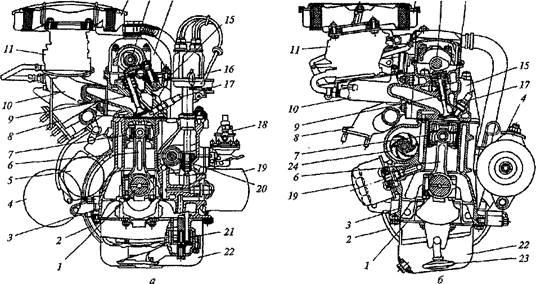 Рис. 2. Двигатели легковых автомобилей малого класса повышенной проходимости (а) и переднеприводного (б):