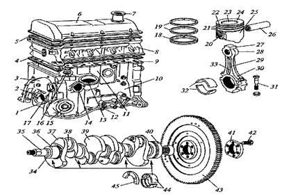 Рис. 2. Кривошипно-шатунный механизм двигателей легковых автомобилей ВАЗ: