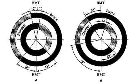 Рис. 11. Фазы газораспределения (а, б)