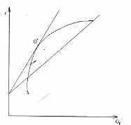 Среди всех таких прямых нужно выбрать самую крутую (более крутая дает большую доходность при заданном риске р), т.е. ту, которая проходит через точку (0, r р) и точку касания 0* к эффективной границе (рис.1).