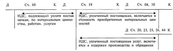 Суммы НДС, предъявленные налогоплательщику поставщикам при приобретении им товаров, работ, услуг, либо уплаченные им на таможне при ввозе товаров на территорию РФ подлежат включению в состав налоговых вычетов, уменьшающих задолженность организации по НДС. НДС, подлежащий уплате организацией в бюджет, определяется как разница между налогом, подлежащим получению от покупателей по проданной им продукции, работам, услугам и другим объектам налогообложения и налогом, уплаченным поставщикам и подрядчикам за приобретенные у них материальные ценности, работы, услуги, стоимость которых относится на издержки производства. Налоговым периодом по НДС может выступать календарный месяц для налогоплательщиков с ежемесячными в течение квартала суммами выручки от реализации товаров (работ, услуг) без НДС и налога с продаж, превышающими 2 млн. руб., для остальных налогоплательщиков - квартал.