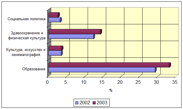 Рис. 3 Динамика расходов на социальную сферу в 2003 году по сравнению с 2002 годом (в %)