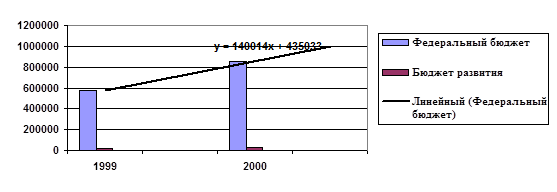 Рис. 4. Соотношение совокупного объема расходов федерального бюджета и Бюджета развития за период 1999-2000 гг., млн. руб.