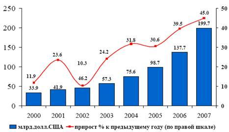 Созданная к 2008 г. система межбюджетных отношений обеспечила условия для устойчивого роста доходов консолидированных бюджетов субъектов Российской Федерации. Доходы консолидированных бюджетов субъектов Российской Федерации с 2001 по 2007гг. в реальном выражении увеличились в два раза. Продолжается положительная динамика экономических показателей муниципалитетов (рис. 9), что позволило обеспечить рост собственных доходов местных бюджетов более чем на 28%.