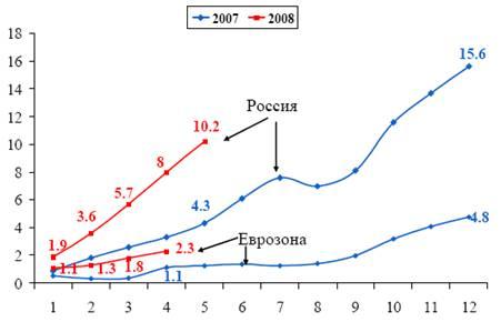 Из-за происходящего в последние годы роста отклонения совокупного спроса от предложения, в 2008 г. были предприняты меры по ужесточению денежно-кредитной политики, что приводит к замедлению темпов роста денежного предложения. Для обеспечения целей по инфляции ужесточается денежно-кредитная политика и пересматривается дальнейшее наращивание расходов бюджета. Для обеспечения долгосрочной устойчивости бюджета требуется удлинение горизонта бюджетного планирования. В 2008 г. Минфином РФ разработана первая долгосрочная Бюджетная стратегия на период до 2023 года, что позволит мобилизовать бюджетные ресурсы.