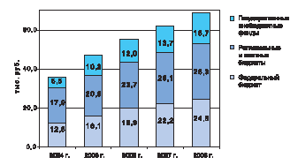 В 2005 году общий объем расходов бюджетов, входящих в бюджетную систему Российской Федерации, составит около 6,6 трлн. рублей. Совокупные бюджетные расходы на душу населения превысят 3,5 тысячи рублей в месяц, а к 2008 году — 5,8 тысяч рублей. Фактически за эти средства общество «приобретает» у государства общественные услуги -образование, здравоохранение, социальное обеспечение, регулирование экономики, гарантии безопасности и правопорядка, защиту общественных интересов, гражданских прав и свобод и все то, что не может быть предоставлено рынком и оплачено каждым из нас в отдельности. Граждане — и как налогоплательщики, и как потребители общественных услуг — должны быть уверены в том, что передаваемые ими в распоряжение государства средства используются прозрачно и эффективно, приносят конкретные результаты как для общества в целом, так и для каждой семьи, для каждого человека.