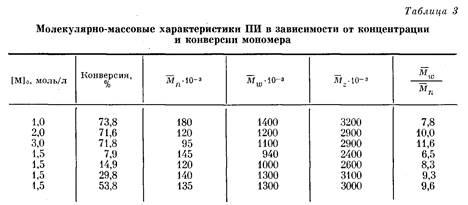 Как и следовало ожидать, для нулевого порядка по мономеру в случае тербиевого катализатора наблюдается обратная зависимость между среднечисленной ММ и начальной концентрацией мономера (табл. 3).